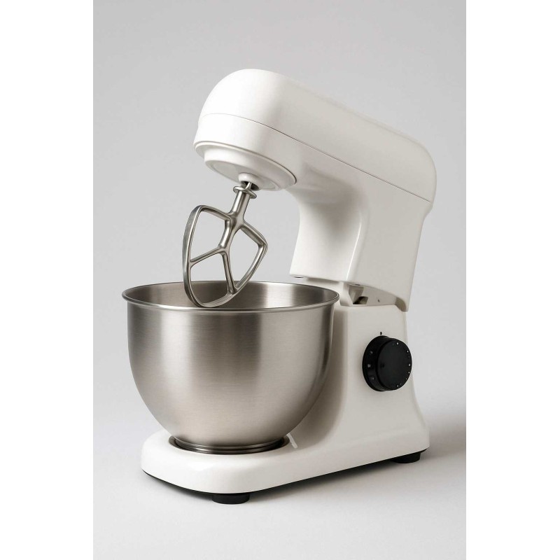 Корпус аккуратный, гладкий, белый с лёгким блеском. Чаша из нержавейки - не поцарапается, не потемнеет, и всегда выглядит как новая. У миксера нет ничего лишнего - только удобная ручка, плавный переключатель скоростей и крепкое основание. Всё по делу, без показухи.
