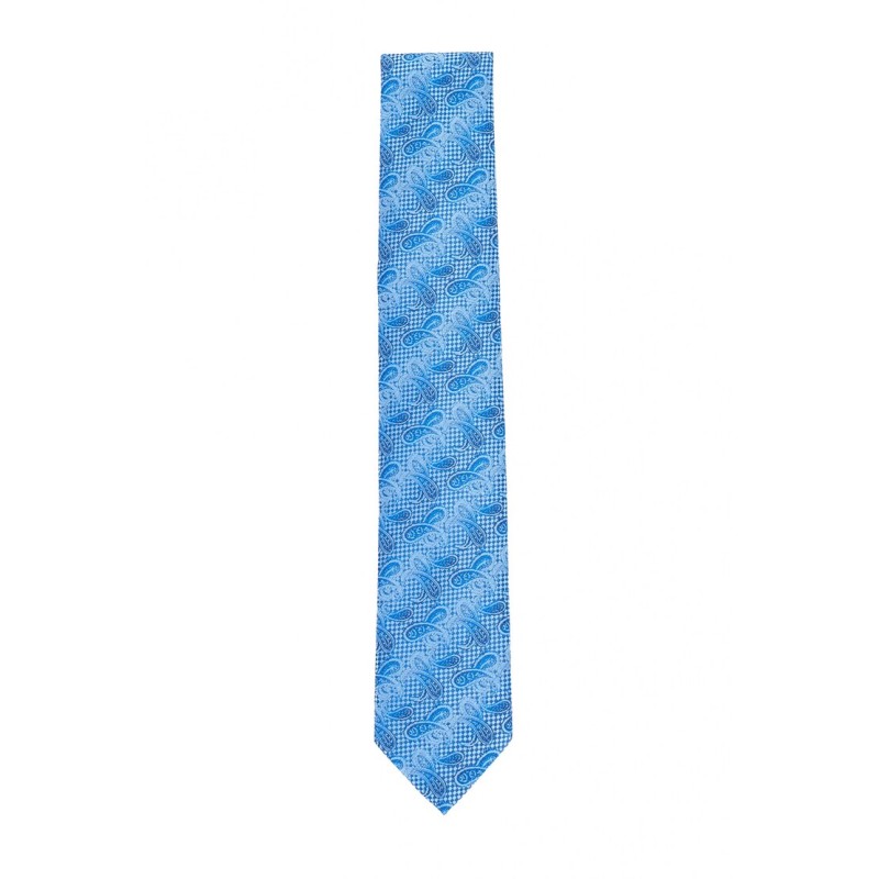 Этот галстук - отличный способ добавить яркий акцент в образ, не перегружая его. Нежный голубой оттенок с узором в стиле пейсли выглядит свежо и стильно, идеально подходя как для офиса, так и для более торжественных случаев. Он хорошо сочетается с классической белой или светло-голубой рубашкой и тёмным костюмом.